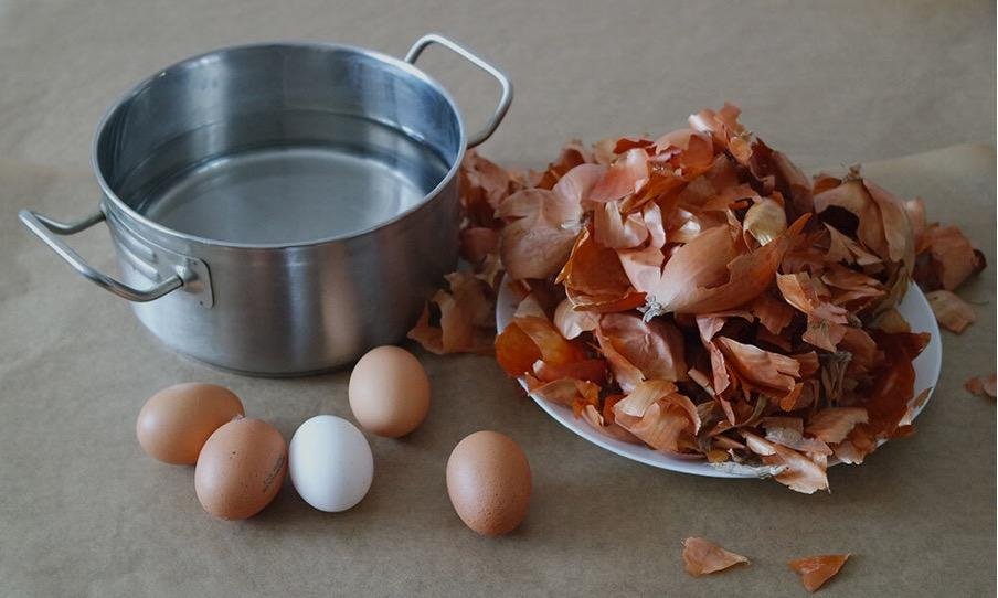 Lukštus reikia perrinkti – pašalinti nešvarius ar supelijusius gabalėlius – ir nuplauti po tekančiu vandeniu, kad neliktų dulkių. Tuomet sudėti į puodą, užpilti vandeniu ir palikti bent 20–30 minučių, kad vanduo pradėtų nusidažyti.